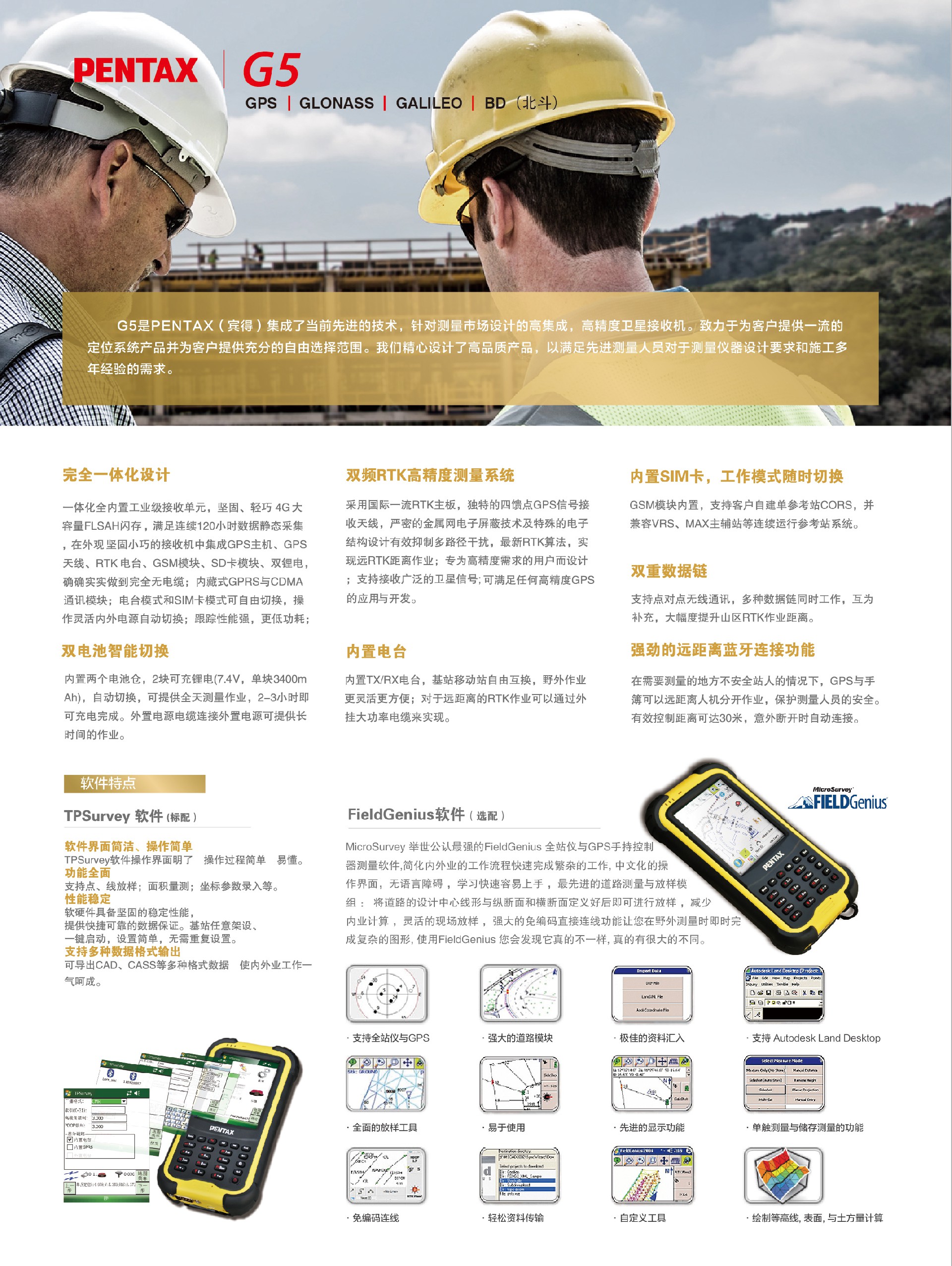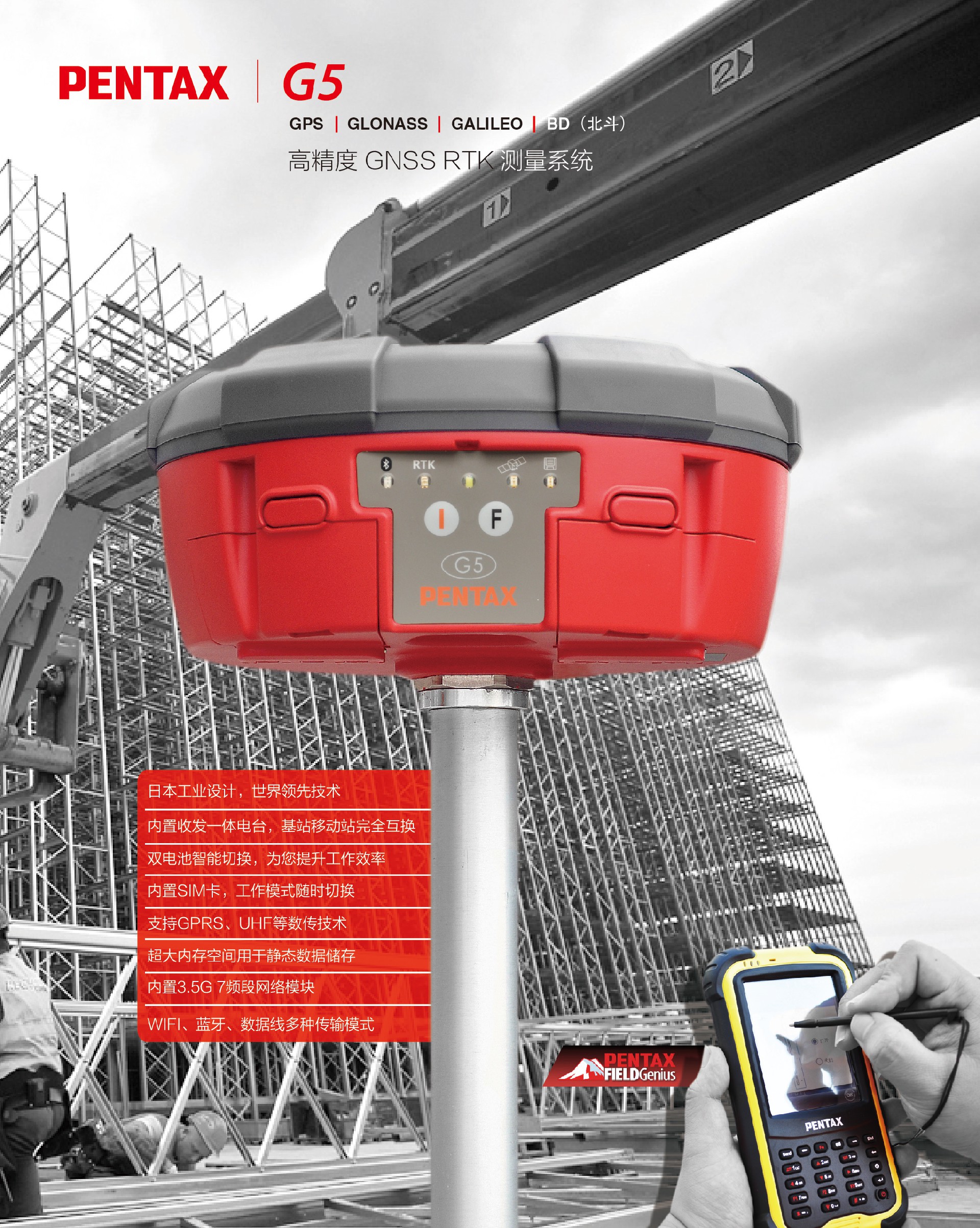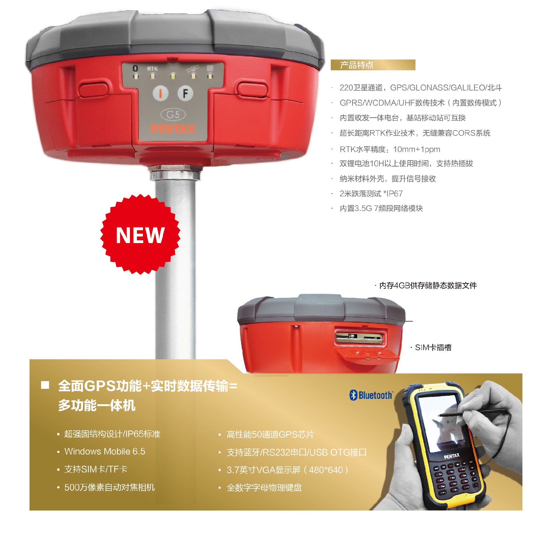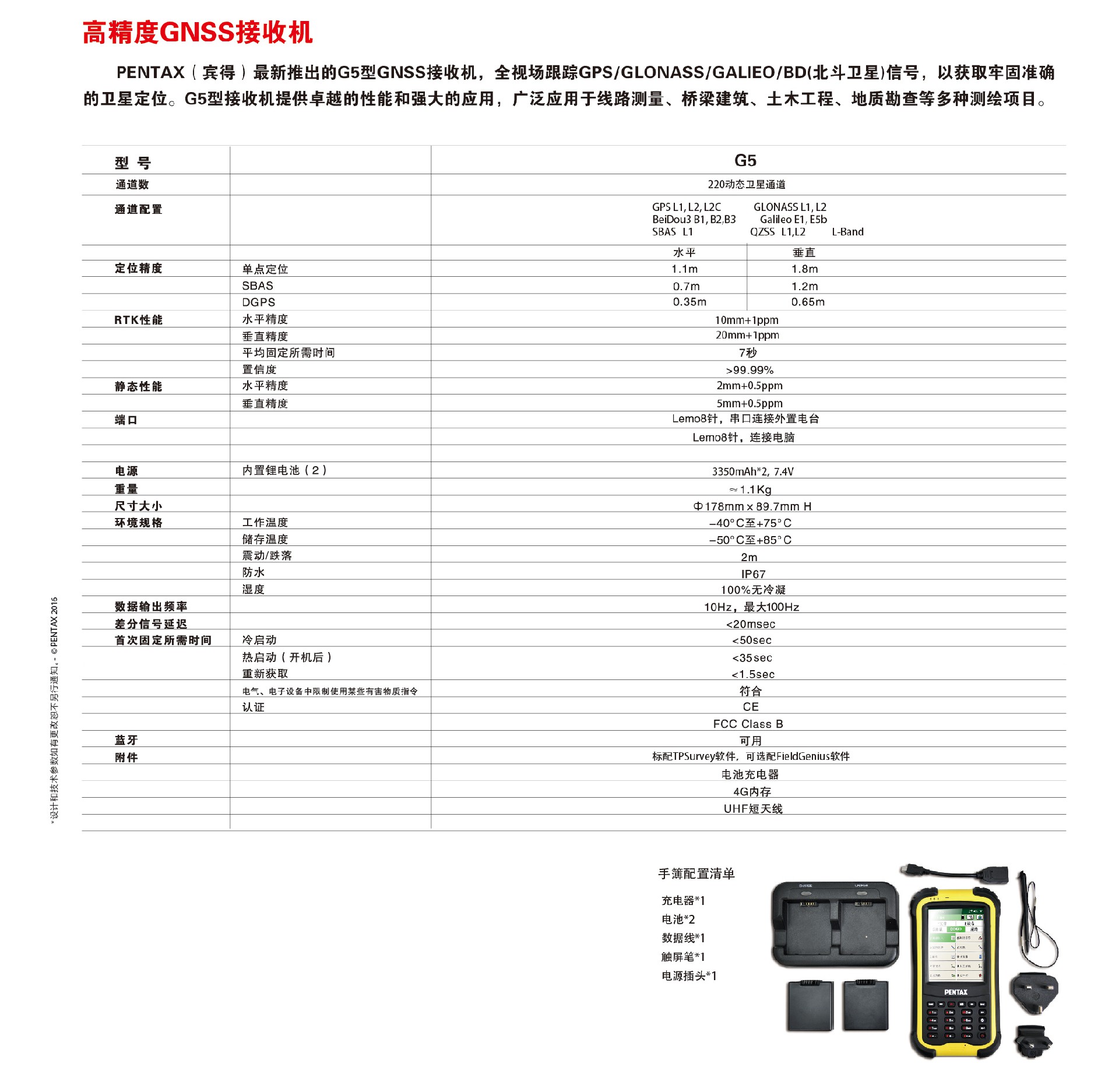 • G5 高精度GNSS RTK系统,针对测量需要设计的完全一体化无电缆解决方案,是一款简单、易用的GNSS测量产品。满足测量人员对于测量仪器设计要求和施工多年经验的需求。...